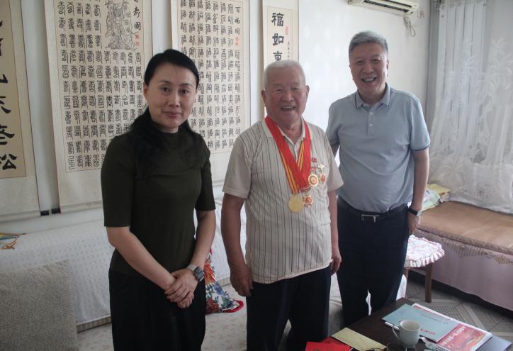 領(lǐng)導(dǎo)們一行來到“光榮在黨50年”離休老黨員陳維崗家中,與其親切交談,詳細了解他的健康狀況和生活情況。集團公司黨委書記、董事長郝東輝在送上慰問金和黨史學(xué)習(xí)教育口袋書的同時,親手將熠熠生輝的“光榮在黨50年”紀(jì)念章佩戴在老人胸前,向他致以節(jié)日的問候,并希望陳老在保重身體、安享晚年的同時,能夠繼續(xù)關(guān)心和支持集團公司發(fā)展。