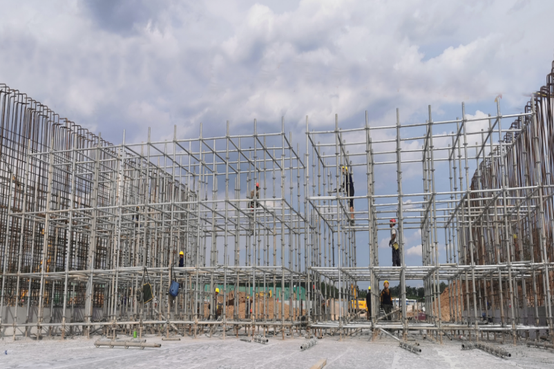 支架搭設(shè)提質(zhì)量 該工程在由東向西下穿東山過(guò)境高速公路的施工中,設(shè)計(jì)有1座長(zhǎng)65米、寬33米、高8米,單孔跨徑為18米的四孔通道箱涵。依據(jù)國(guó)家相關(guān)規(guī)定,該通道施工屬于超過(guò)一定規(guī)模且危險(xiǎn)性較大的分部分項(xiàng)工程,需要組織專家對(duì)施工方案進(jìn)行論證。項(xiàng)目部提前謀劃,開工伊始責(zé)成相關(guān)技術(shù)人員制定專項(xiàng)方案,在六月中旬順利通過(guò)了專家論證,為后續(xù)施工奠定了堅(jiān)實(shí)基礎(chǔ)。針對(duì)該通道墻板厚、荷載大、支模架搭設(shè)跨度寬的情況,項(xiàng)目部按照規(guī)定要求,決定采用組裝快捷、使用方便、節(jié)省費(fèi)用、安全性達(dá)標(biāo)的盤扣式鋼管支架進(jìn)行打設(shè),確保高支?;炷翝仓踩€(wěn)定,有效保證了頂板支架搭設(shè)的施工安全。