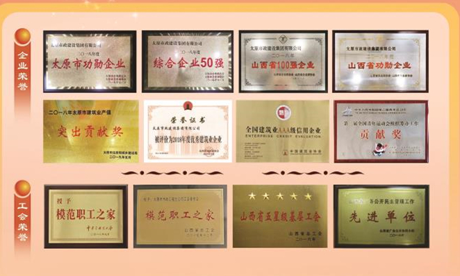 2019年,太原市政集團(tuán)先后被評為全國優(yōu)秀施工企業(yè)、中國施工企業(yè)管理協(xié)會AAA級信用企業(yè)、山西省百強(qiáng)企業(yè)(第39位)、省骨干建筑業(yè)企業(yè)、省市優(yōu)秀建筑業(yè)企業(yè)、太原市企業(yè)50強(qiáng)(第25位)、太原市功勛企業(yè),獲得太原市建筑業(yè)產(chǎn)值突出貢獻(xiàn)獎、第二屆全國青年運(yùn)動會組織籌辦工作貢獻(xiàn)獎等。太原市政集團(tuán)承建的太原市松小線建設(shè)工程、新晉祠路道路改造工程、臥虎山快速路建設(shè)工程一標(biāo)段、普國路道路改造工程一標(biāo)段、西寨北街、西寨路道路建設(shè)工程獲得2019年度全省市政金杯示范工程獎……