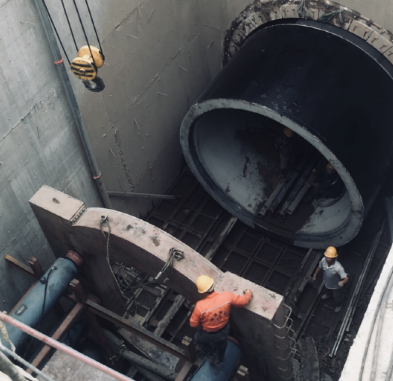 康樂街道路改造工程?hào)|起解放南路,西至濱河?xùn)|路,全長1536米,規(guī)劃紅線寬30米,包括道路、排水及電力工程,于2018年5月開工建設(shè),由三公司負(fù)責(zé)承建。該工程的排水工程采用雨污水分流體制,設(shè)計(jì)1趟污水管線,3趟雨水管線,1趟為收集周邊小區(qū)雨水的明挖管道,明挖管埋深介于4.2到5米之間,溝槽開挖深度大,地下水位高,施工前制定鋼板樁支護(hù)溝槽開挖安全施工專項(xiàng)方案,采用封水效果較好的拉森樁對(duì)溝槽壁進(jìn)行支護(hù),并通過鋼支撐對(duì)拉森樁進(jìn)行加固,確保溝槽施工安全。兩趟為3米雨水頂管,埋深介于7到15米之間,全線布置兩座工程井,兩座接收井,因周邊臨近建筑物及地下管線,且地下水位高,作業(yè)空間有限,工作井和接收井采用逆做井施工法。在逆做井施工時(shí),井周采用三軸攪拌樁和工法樁支護(hù)施工,井底采用三軸攪拌樁進(jìn)行封底,頂管采用泥水平衡施工工藝。項(xiàng)目部加大人員管控力度,全程監(jiān)督溝槽開挖、管道安裝等工序,對(duì)每道工序進(jìn)行自檢報(bào)驗(yàn),確認(rèn)無誤后再進(jìn)行下道工序施工。該工程建成后,極大改善解放路、新建路和迎澤大街等區(qū)域的排水情況,有效緩解下游城南退水渠的壓力,進(jìn)一步提升城市排洪能力。