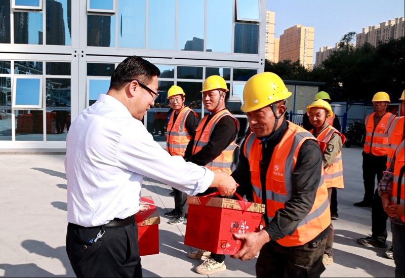 活動(dòng)中,市總工會(huì)領(lǐng)導(dǎo)與一線施工人員進(jìn)行了親切交談,仔細(xì)詢問項(xiàng)目進(jìn)展和員工生活保障情況,并為大家送來了月餅、豬肉等慰問品。